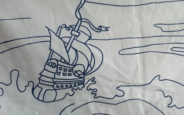 There were some beautiful pictures of ships in the archive, along with a selection of calamitous (and somewhat hilarious) Victorian Postcards (see below). I wanted to capture that feeling but contrast it with something more mundane – hence the tea towel featuring an impending shipwreck.