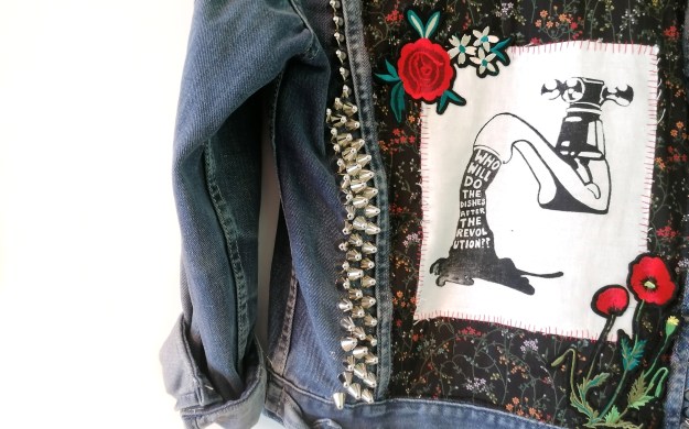 I love making battle jackets. I like how you can be methodical and creative but also DIY, how you can make something that looks like it was thrown together but which actually took time to craft. Again, this is a piece that questions the idea of value when it comes to art making and how printing onto fabric as opposed to paper devalues the item. The battle jacket is an act of rebellion in itself so they also naturally subvert ideas of production